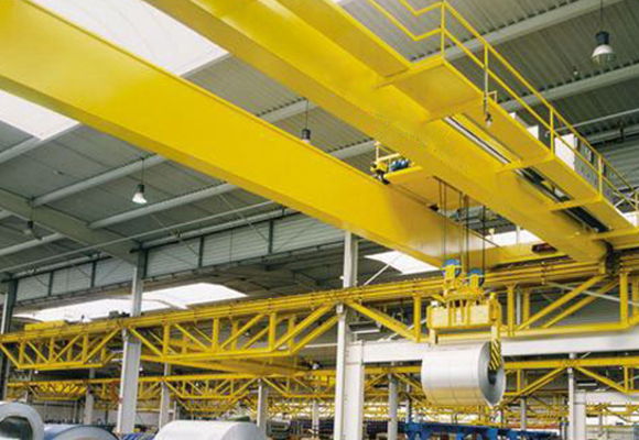 它的吊具是吊钩型、抓斗型、电磁吸盘型中的一种或同时使用其中的两种、三种。通用桥式起重机广泛地应用在室内外仓库、厂房、码头和露天贮料场等处。